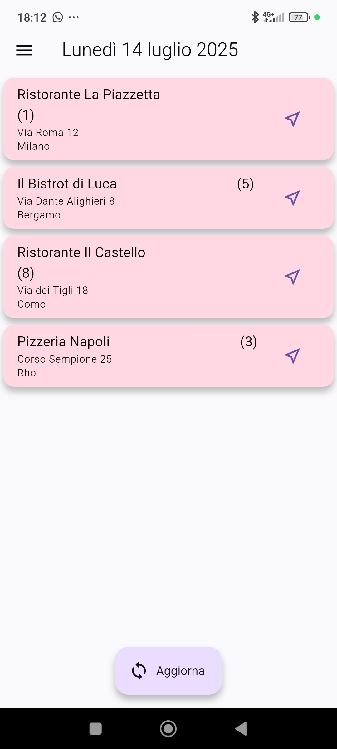 • Ogni autista riceve sul proprio cellulare la lista delle consegne con i seguenti dettagli: