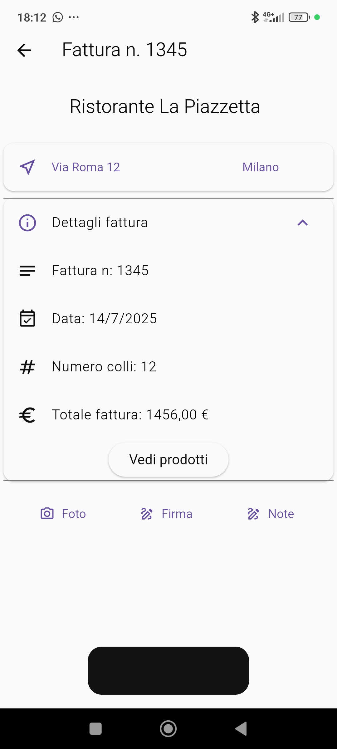 • L’applicazione si collega all’ERP e importa automaticamente i documenti di consegna (DDT, fatture accompagnatorie, ecc.).